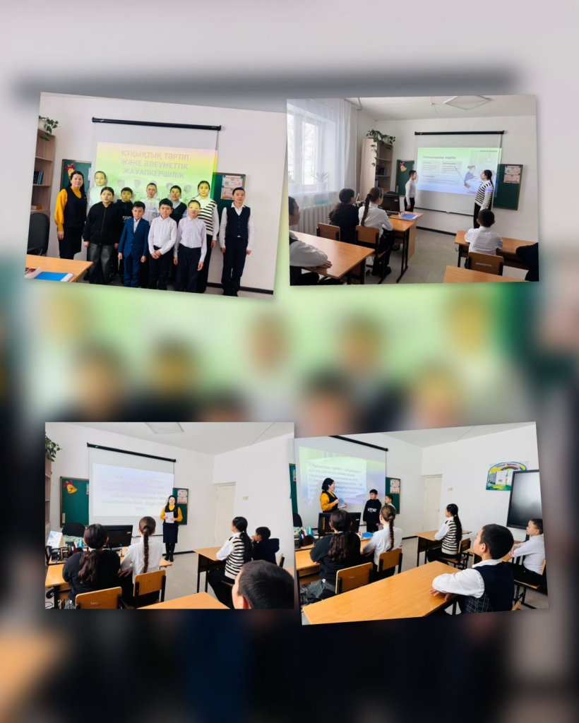 “Тәртіп және жауапкершілік” тақырыбында тәрбие сағаты өтті. Сабақ барысында оқушылар “Заң мен тәртіп” қағидаттарының маңызын түсініп, қоғамдағы жауапкершілік пен құқықтық мәдениет туралы ой бөлісті. Тәртіп — табысты болашақтың негізі.